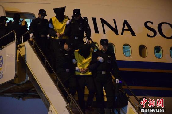 2016年11月29日晚,载有74名电信诈骗嫌疑人的中国南航波音777飞机降落在武汉天河机场,74名嫌疑人被湖北襄阳警方从马来西亚押回。这只是中国警方跨境打击网络诈骗犯罪的冰山一角。