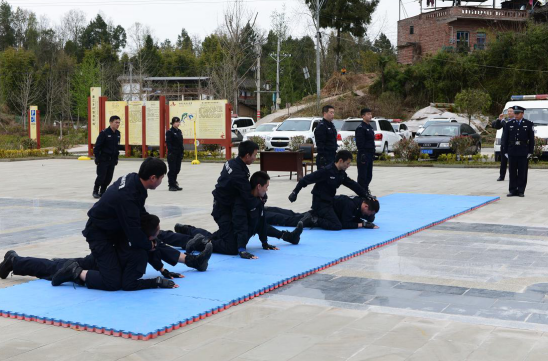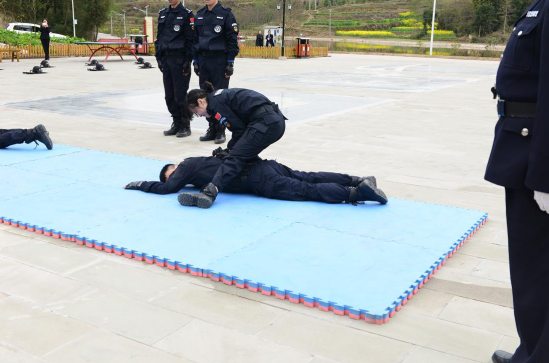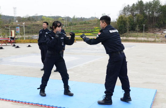 接着训练的是擒敌拳,擒敌拳综合了用踢、打、摔、擒动作要领,达到制服敌手的目的,是司法警察掌握的最基本格斗要领,以提高干警攻击和防护能力。