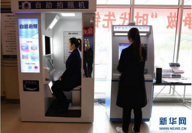 2017年3月8日,市民在重庆两江新区人和派出所使用身份证自助拍照机和自助申领机。 重庆市两江新区公安分局推出的这项“互联网+”便民措施可全天候24小时办理身份证到期换领、丢失补领等业务,全程仅需约3分钟。新华社记者 王全超 摄