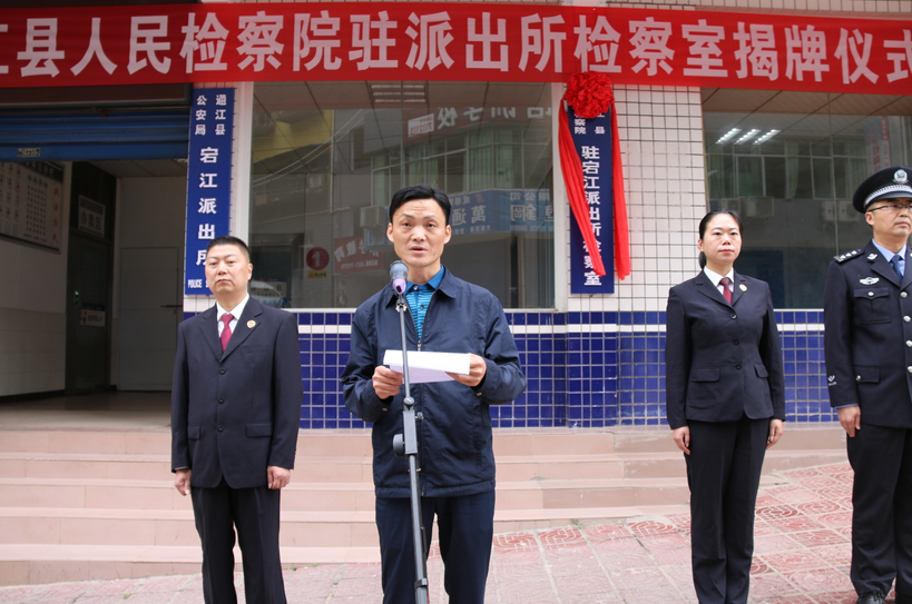 春寒料峭,骄阳初上。4月21日早上8时,通江县公安局宕江派出所大院内人民警察和人民检察官整齐列队,精神抖擞,通江县首批派驻检察室挂牌成立仪式隆重举行,通江县委常委、通江县委政法委书记马良省出席并讲话。