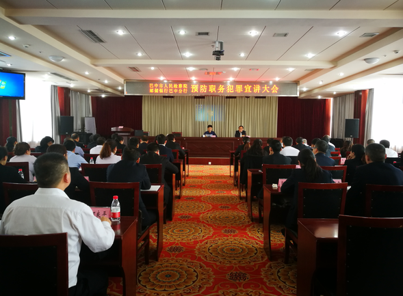 4月17日,巴中市检察院预防职务犯罪宣讲团应邀为中国邮政储蓄银行巴中分行开展预防宣讲,分行领导班子,各部室、营业网点负责人及各县、区正副行长等共100余人参加会议。