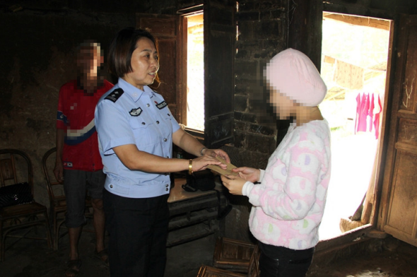 7月3日,大队长王海燕在整理辖区境外人员资料时,了解到居住在洪口镇古宁寨村的武某刚生完小孩,其丈夫又长期在外务工,生活非常困难。了解情况后,王海燕带领外管民警买上慰问品,驱车70余公里去看望慰问武某并送上了慰问金。过程中详细询问了武某近期的生活、家庭情况,对刚生完小孩的武某表示祝贺,对她的生活习惯、家庭情况、邻里关系等一一进行了交流,同时给她讲述了夫妻互敬互爱,忠孝贤德的中国传统美德。之后,王海燕还走访了武某的邻居,说明了武某从越南来我们国家居住实在不容易,现在刚生了小孩,行动不便,邻居们要在生活上多关心照顾她。