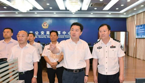 图:罗增斌在市公安局调研指挥中心工作开展情况。巴中日报记者夏雨摄