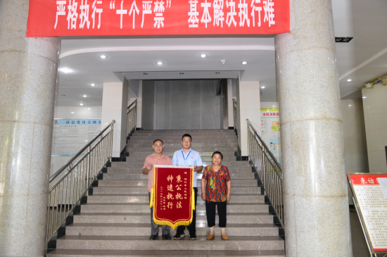 近日,通江法院执行局收到申请人熊仕奎送来的一面锦旗,熊仕奎紧紧握着执行干警余显仁的手,感谢通江法院执行局干警神速执行、秉公执法。