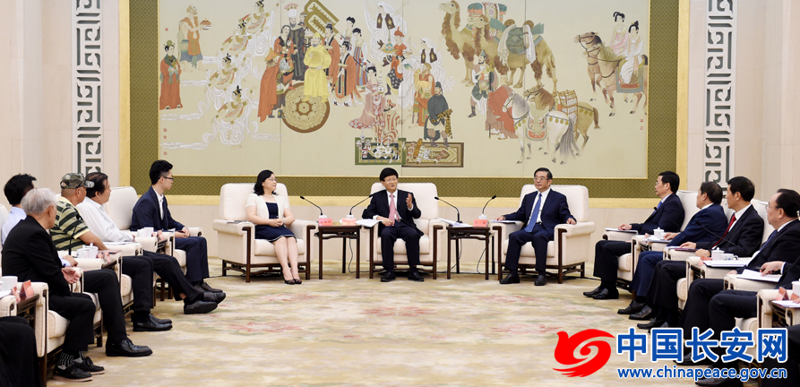 9月4日,中共中央政治局委员、中央政法委书记孟建柱在北京会见电影《邹碧华》主创人员和邹碧华同志亲属。郝帆摄