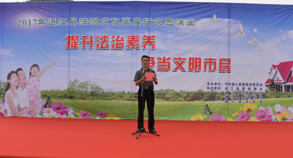 9月16日,通江县在红军广场隆重举行“提升法治素养,争当文明市民”——2017年法治文化基层行文艺演出活动。县委常委、政法委书记马良省出席活动并致辞。