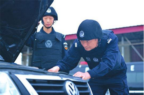 刘且(右)检查嫌疑车辆。