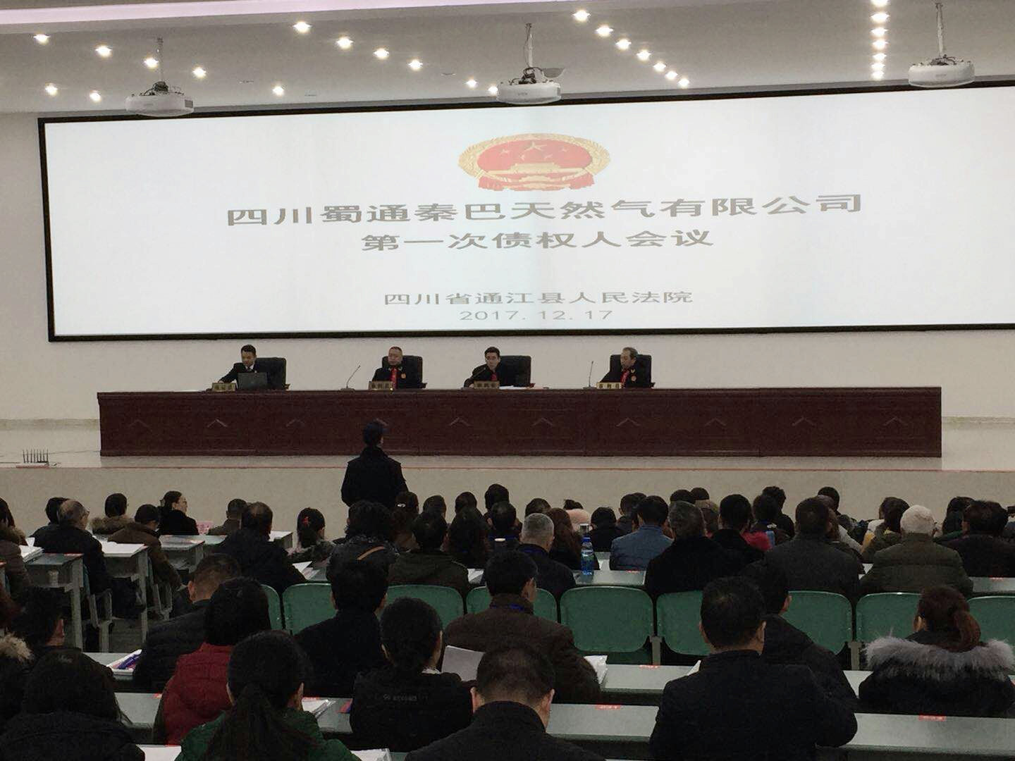 通江法院在司法活动中全程全域贯彻落实党的十九大精神,积极推动供给侧结构性改革,按照最高人民法院《关于依法开展破产案件审理积极稳妥推进破产企业救治和清算工作的通知》要求,经前期精心准备、严密统筹,于12月17日,在通江县职业高级中学多功能会议厅召开四川蜀通秦巴天然气有限公司破产重整案第一次债权人会议。此次会议旨在确保债权人债权的安全性、稳定性和合法性,有效化解重大涉众性不稳定因素,12月15日,通江县委常委、常务副县长何奎召开了债权人会议的安保维稳专题会,提出了全责任零事故的工作要求,县委常委、政法委书记马良省到会指导,会议由合议庭审判长何文主持。本次会议共有997户债权人参加,占应出席会议债权人数的72.46%。